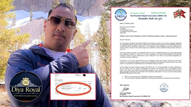 लन्डन । बेलायतमा एक नेपाली रेष्टुरेन्ट मालिकले ३२ लाख रुपैयाँसम्म तिरेका कामदारलाई श्रम शोषण गरेर दास बनाइरहेको तथ्य बाहिरिएको छ ।