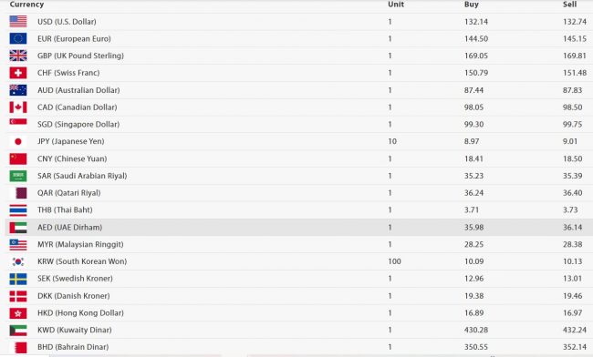 त्यस्तै, अमेरिकी डलरको खरिद दर १३२ रुपैयाँ १४ पैसा र बिक्री दर १३२ रुपैयाँ ७४ पैसा रहेको छ । युरो एकको खरिद दर १४४ रुपैयाँ ५० पैसा र बिक्री दर १४५ रुपैयाँ १५ पैसा रहेको छ।
