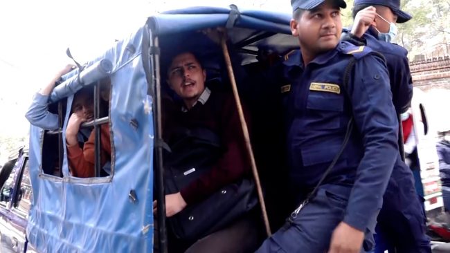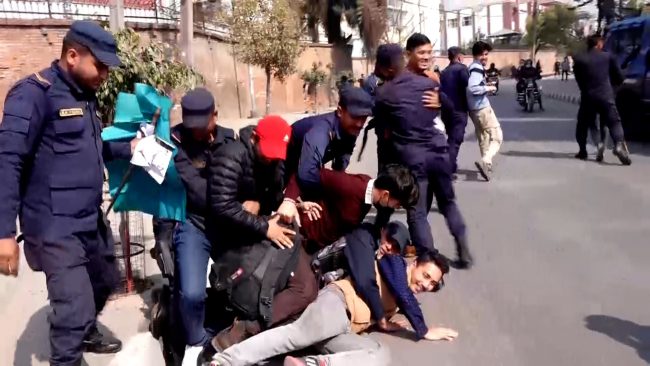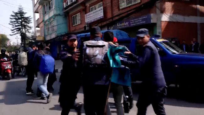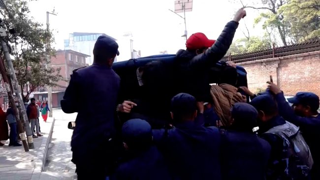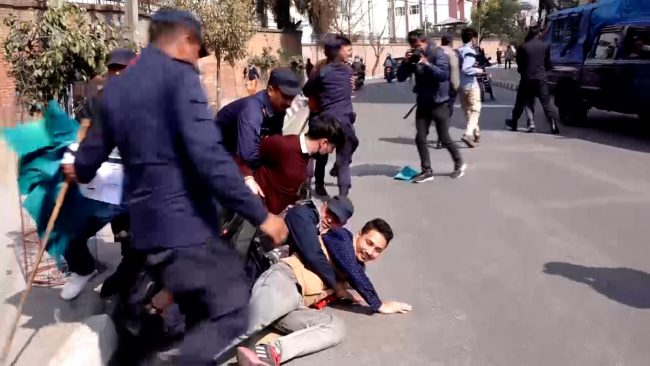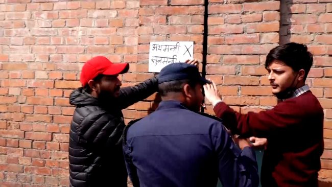 गृहमन्त्रीको राजीनामा माग गर्दै सिंहदरबारमा प्रदर्शन गर्ने नेविसंघका कार्यकर्ता पक्राउ (तस्वीरसहित)