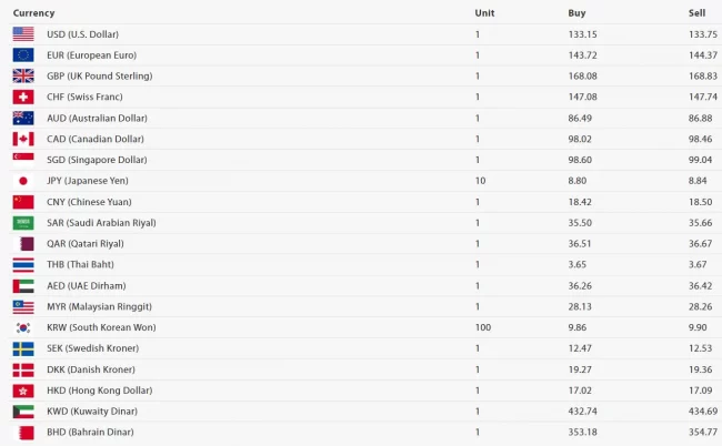 त्यस्तै, अमेरिकी डलरको खरिद दर १३३ रुपैयाँ १५ पैसा र बिक्री दर ३३ रुपैयाँ ७५ पैसा रहेको छ। युरो एकको खरिद दर १४३ रुपैयाँ ७२ पैसा र बिक्री दर १४४ रुपैयाँ ३७ पैसा रहेको छ।