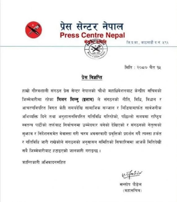 रास्वपाबाट उम्मेदवार बनेपछि मिलन लिम्बुलाई प्रेस सेन्टरले गर्यो बर्खास्त