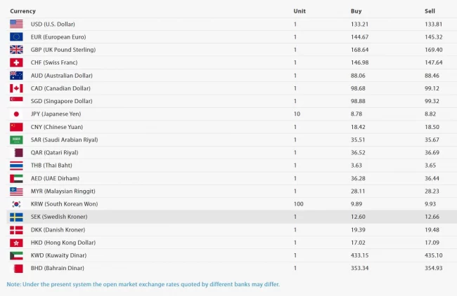 साथै, कुवेती दिनार एकको खरिददर ४३३ रूपैयाँ १५ पैसा र बिक्रीदर ४३५ रूपैयाँ १० पैसा र बहराइन दिनार एकको खरिददर ३५३ रूपैयाँ ३४ पैसा र बिक्रीदर ३५४ रूपैयाँ ९३ पैसा तोकिएको राष्ट्र बैंकले जनाएको छ ।