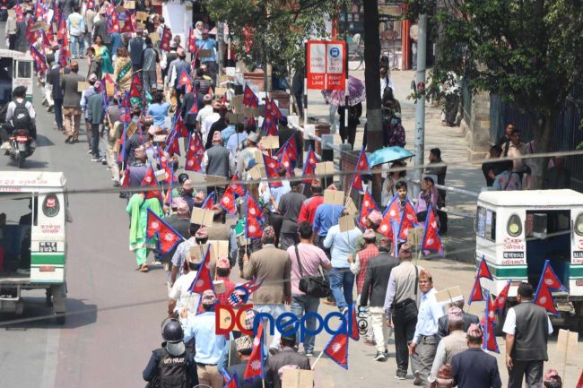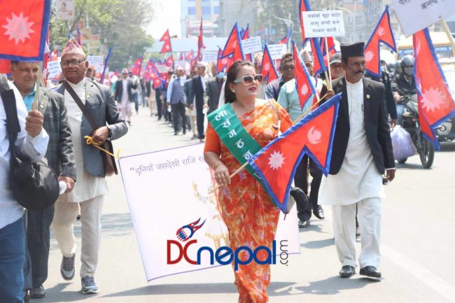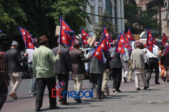 काठमाडौं। संवैधानिक राजतन्त्र र हिन्दू राज्यको माग गर्दै आन्दोलनरत राष्ट्रिय प्रजातन्त्र पार्टी निकट भूपू सैनिकले काठमाडौंमा प्रदर्शन गरेको छ।