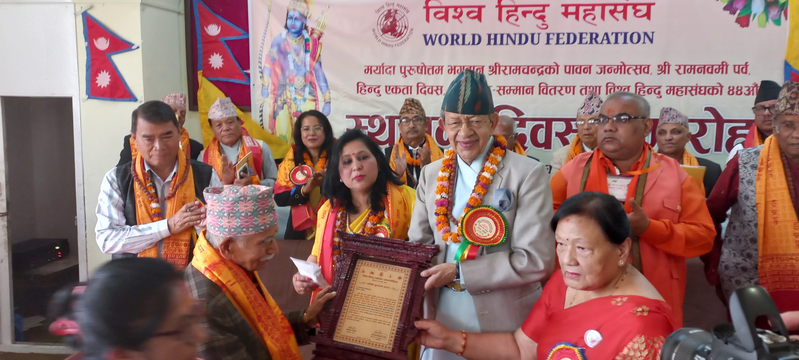 त्यस अवसरमा रु ५० हजार राशिको ‘भरतकेशर सिंह विश्व हिन्दु अन्तर्राष्ट्रिय’ पुरस्कार महन्थ सुरेन्द्रनाथ अवधूतलाई प्रदान गरियो। कार्यक्रममा नीना भेटुवाल, सोभित उप्रेती र लक्ष्मण सापकोटालाई ‘विश्व हिन्दु सेवा रत्न’ सम्मान प्रदान गरियो।