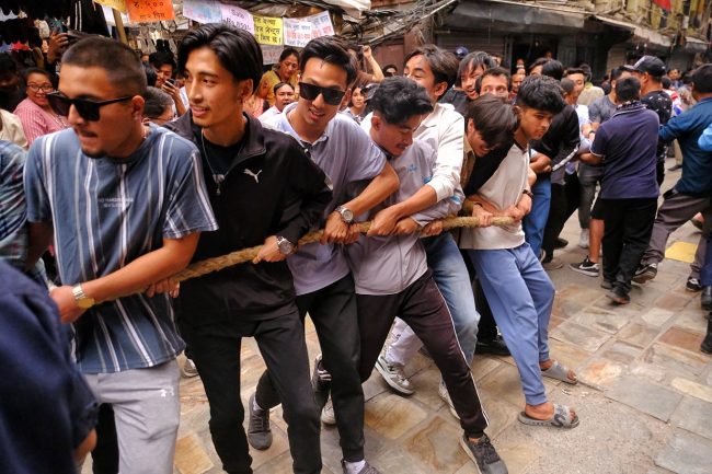 सेतो मच्छिन्द्रनाथ जात्राको दोस्रो दिन: असनदेखि हनुमानढोकासम्म रथ तानियो (फोटो फिचर)