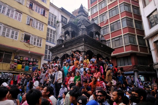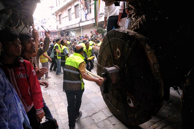 सेतो मच्छिन्द्रनाथ जात्राको दोस्रो दिन: असनदेखि हनुमानढोकासम्म रथ तानियो (फोटो फिचर)