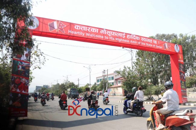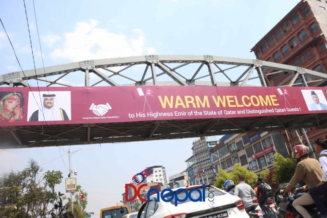 काठमाडौं। कतारका राजा शेख तमिम बिन हमाद अल थानीको स्वागतका लागि राजधानी काठमाडौं सिंगारिएको छ। कतारका अति विशिष्ठ पाहुनाको स्वागतका लागि काठमाडौँको मुख्य सडक, चोकमा स्वागतद्वार, तुल ब्यानरसहित चिटिक्क पारिएको हो।