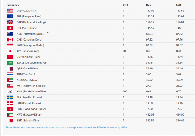 त्यस्तै, अमेरिकी डलर एकको खरिद दर १३३ रुपैयाँ ५ पैसा रहेको छ भने बिक्री दर १३३ रुपैयाँ ६५ पैसा रहेको छ। युरो एकको खरिद दर १४२ रुपैयाँ २८ पैसा रहेको छ भने बिक्री दर १४२ रुपैयाँ ९३ पैसा रहेको छ।