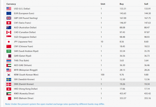 आजको लागि कुवेती दिनार १ को खरिददर ४३३ रुपैयाँ ४७ पैसा र बिक्रीदर ४३५ रुपैयाँ ४२ पैसा निर्धारण भएको छ। त्यसैगरी आजको लागि बहराइन दिनारको खरिददर ३५३ रुपैयाँ ५७ पैसा र बिक्रीदर ३५५ रुपैयाँ १६ पैसा निर्धारण भएको छ।