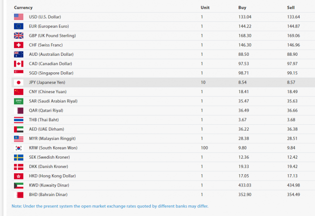 त्यस्तै, अमेरिकी डलरको खरिद दर १३३ रुपैयाँ ४ पैसा र बिक्री दर १३३ रुपैयाँ ६४ पैसा रहेको छ। युरो एकको खरिद दर १४४ रुपैयाँ २२ पैसा र बिक्री दर १४४ रुपैयाँ ८७ पैसा रहेको छ।