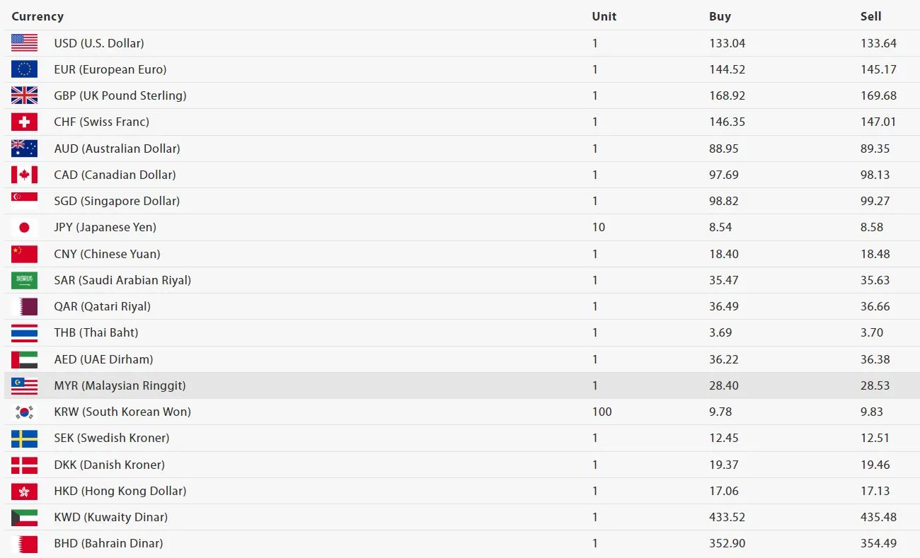 त्यस्तै, अमेरिकी डलरको खरिद दर १३३ रुपैयाँ ४ पैसा र बिक्री दर १३३ रुपैयाँ ६४ पैसा रहेको छ। युरो एकको खरिद दर १४४ रुपैयाँ ५२ पैसा र बिक्री दर १४५ रुपैयाँ १७ पैसा रहेको छ।