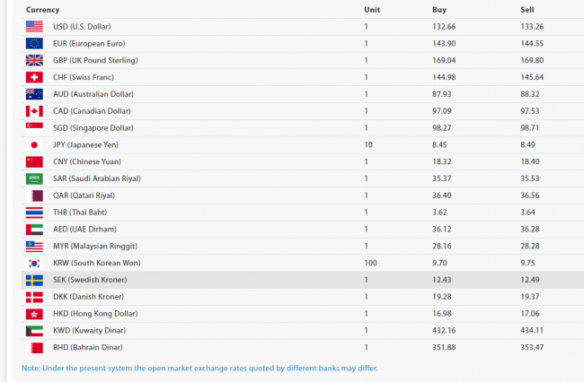 त्यस्तै, अमेरिकी डलर एकको खरिद दर १३२ रुपैयाँ ६६ पैसा रहेको छ भने बिक्री दर १३३ रुपैयाँ २६ पैसा रहेको छ। युरो एकको खरिद दर १४३ रुपैयाँ ९० पैसा रहेको छ भने बिक्री दर १४४ रुपैयाँ ५५ पैसा रहेको छ।