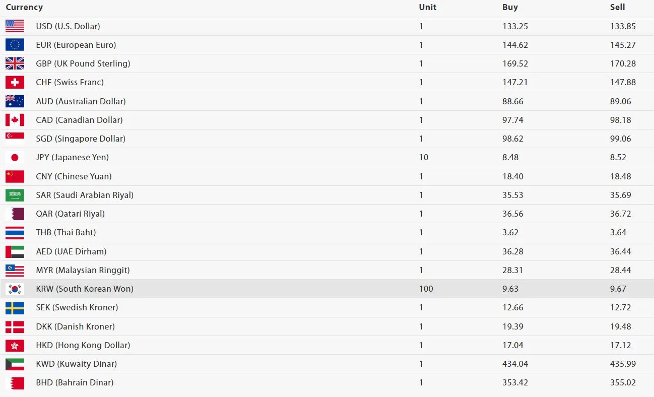 आज कुन देशको मुद्राको विनिमय दर कति?
