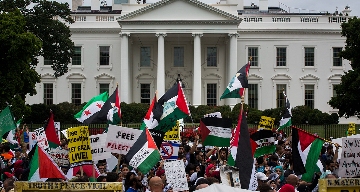 ह्वाइट हाउस अगाडि ३० हजार प्यालेस्टाइन समर्थकको प्रदर्शन