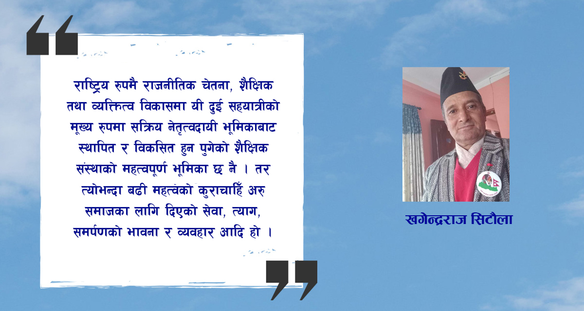 राष्ट्रिय रुपमै राजनीतिक चेतना,शैक्षिक तथा व्याक्तित्व विकासमा यी दुई सहयात्रीको मूख्य रुपमा सक्रिय नेतृत्वदायी भूमिकाबाट स्थापित र विकसित हुन पुगेको शैक्षिक संस्थाको महत्वपूर्ण भूमिका छ नै। तर त्योभन्दा बढी महत्वको कुराचाहिँ अरु समाजका लागि दिएको सेवा,त्याग,समर्पणको भावना र व्यवहार आदि हो।