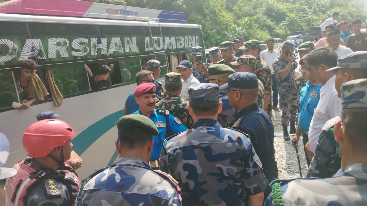 काठमाडौं।  गृहसचिव एकनारायण अर्यालय, प्रहरी महानिरीक्षक बसन्तबहादुर कुँवरले सिमलतालमा गएको पहिरोले दुई बस बगाएको क्षेत्रको स्थलगत अवलोकन गरेका छन्।