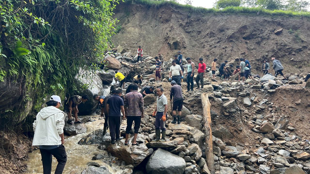 भोजपुर। जिल्लाको टेम्केमैयुङ गाउँपालिका–९ लेखर्कवासीले श्रमदान गरेर अवरुद्ध सडक सञ्चालन गरेका छन् । वर्षाका कारण पाँचधारे–भोजपुर सडकको केही भाग राउतेखोलाले बगाएपछि श्रमदान गरेर सञ्चालनमा ल्याइएको हो ।