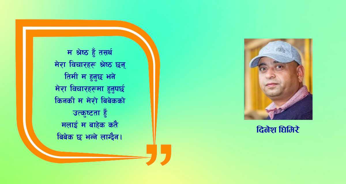 “बाबा, म एक्लो छोरो। हजुर पनि बुढो भइसक्नु भएको छ। आमा त झन् रोगी हुनुहुन्छ। म नेपालै बसेँ भने अलि हेरचाह हुन्छ नि”