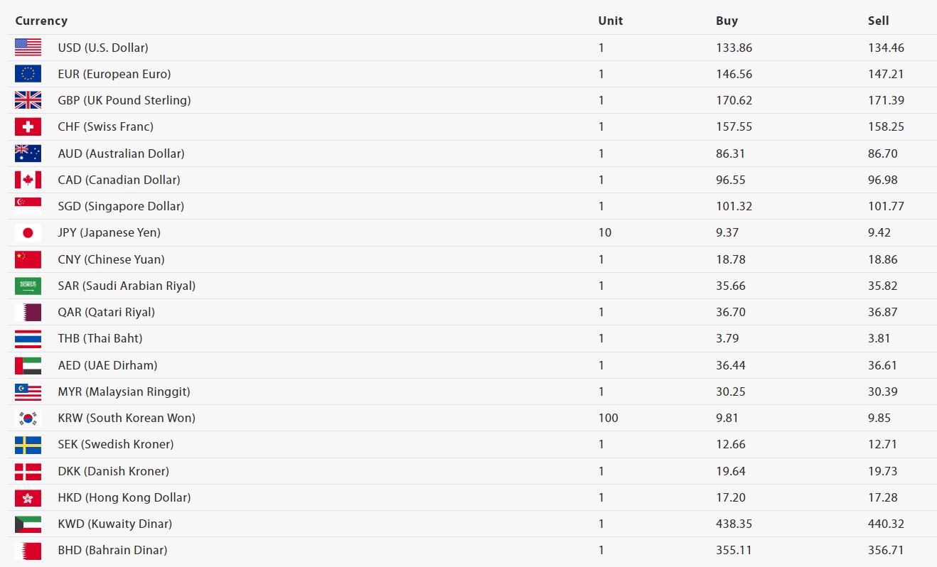राष्ट्र बैंकका अनुसार आजको लागि अमेरिकी डलर १ को खरिददर १३३ रुपैयाँ ८६ पैसा र बिक्रीदर १३४ रुपैयाँ ४६ पैसा निर्धारण भएको छ