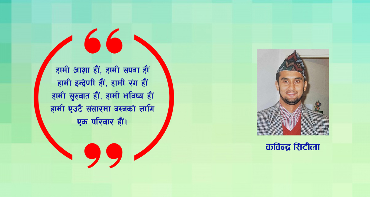 हामी एउटै संसारमा बस्नको लागि एक परिवार हौं।