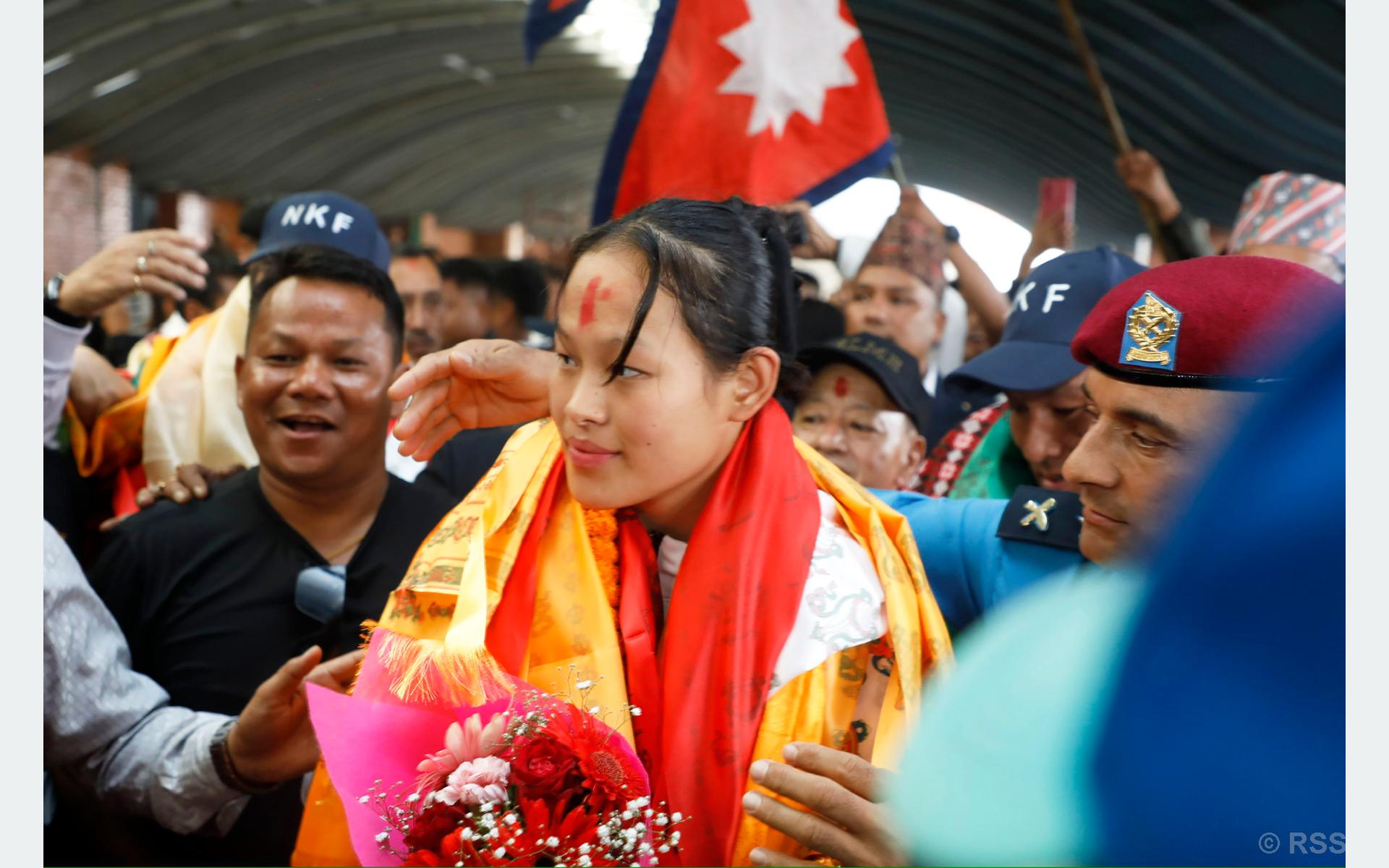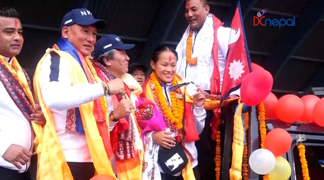 ऐतिहासिक रजत पदक जितेकी एरिकालाई त्रिभुवन विमानस्थलमा भव्य स्वागत