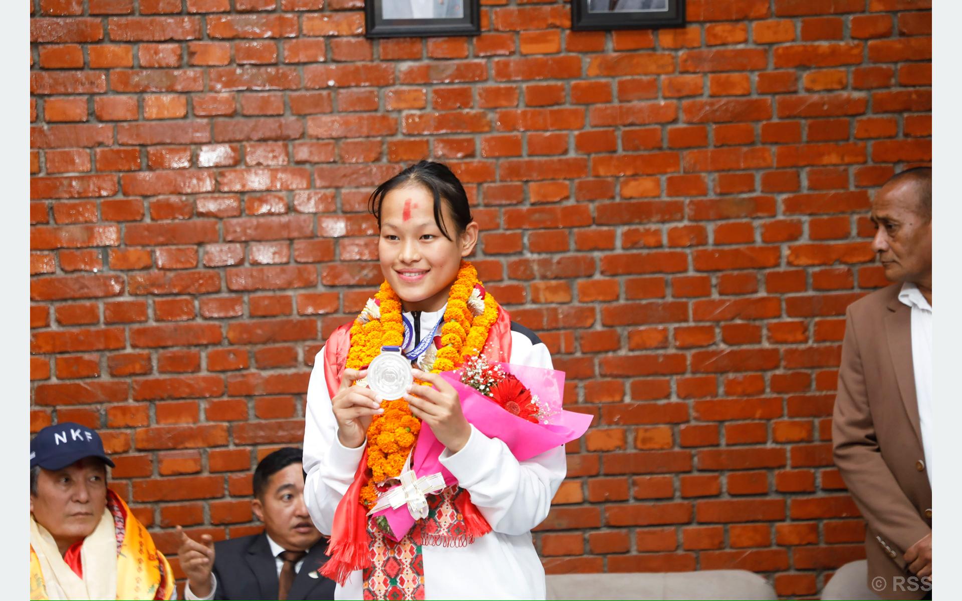 चीनको हाङझाओ शहरमा आयोजित प्रतियोगितामा रजत पदक जितेर स्वदेश फर्किएकी गुरुङलाई मंगलबार त्रिभुवन अन्तर्राष्ट्रिय विमानस्थलमा भव्य स्वागत गरिएको हो। त्यस्तै एसियन जुनियर कराते च्याम्पियनसिप र एसियन पारा कराते च्याम्पियनसिपमा सहभागी खेलाडीहरुलाई स्वागत गरिएको छ।