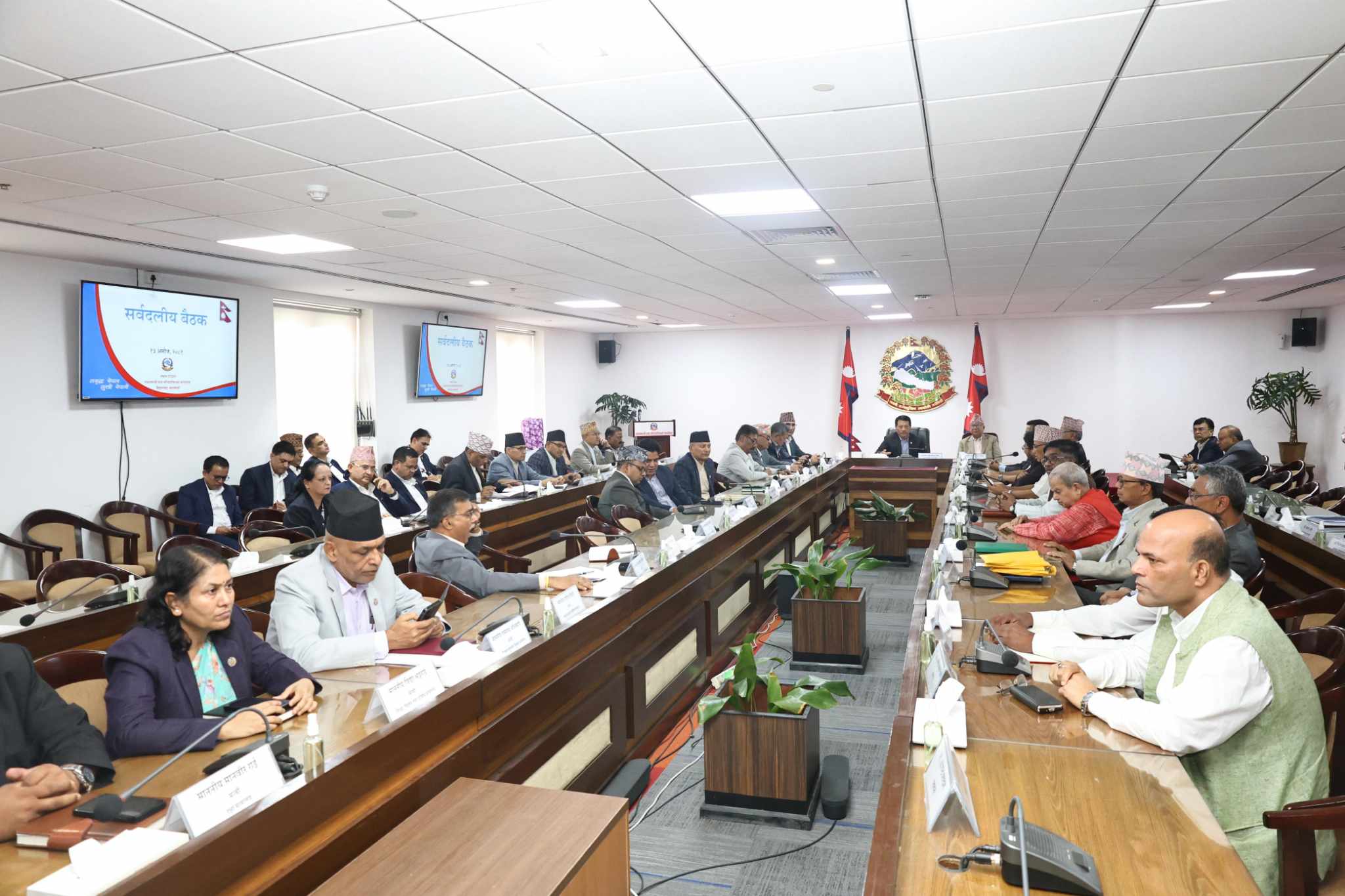 अविरल वर्षापछिको बाढीपहिरो एवं विपद्, उद्धार, धनजनको क्षति र राहतका विषयमा छलफल गर्न सर्वदलीय बैठक बसेकाे हाे।