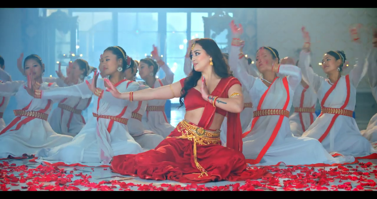 सार्वजनिक गीतको भिडियोमा नायक आकाश श्रेष्ठ र करुणा श्रेष्ठलाई रोमान्टिक रुपमा देख्न सकिन्छ।