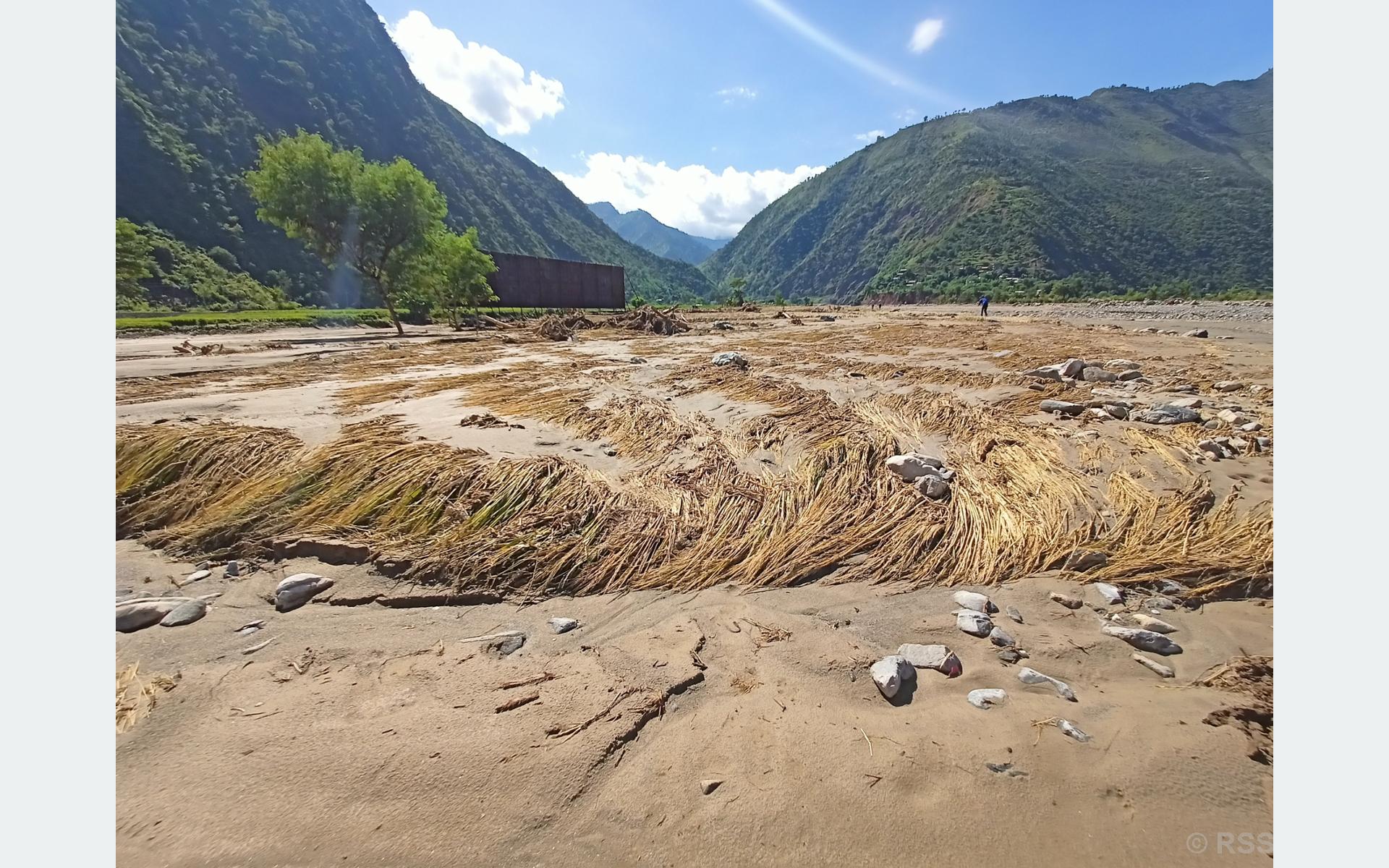 भर्खर पसाएको धान बाढीले जमिनसँगै कटान गरेपछि किसान दुःखी छन्। बालुवा, माटो, ढुङ्गा र मुढाले पुरेको, च्यापिएको धानको बाला हेर्दै यहाँका किसान अधिकांश समय पुर्पुरोमा हात राखेर बस्छन्। मन बुझाउने विकल्प भेट्दैनन्। किसानलाई सरकारसँग पनि केही आशा छैन।