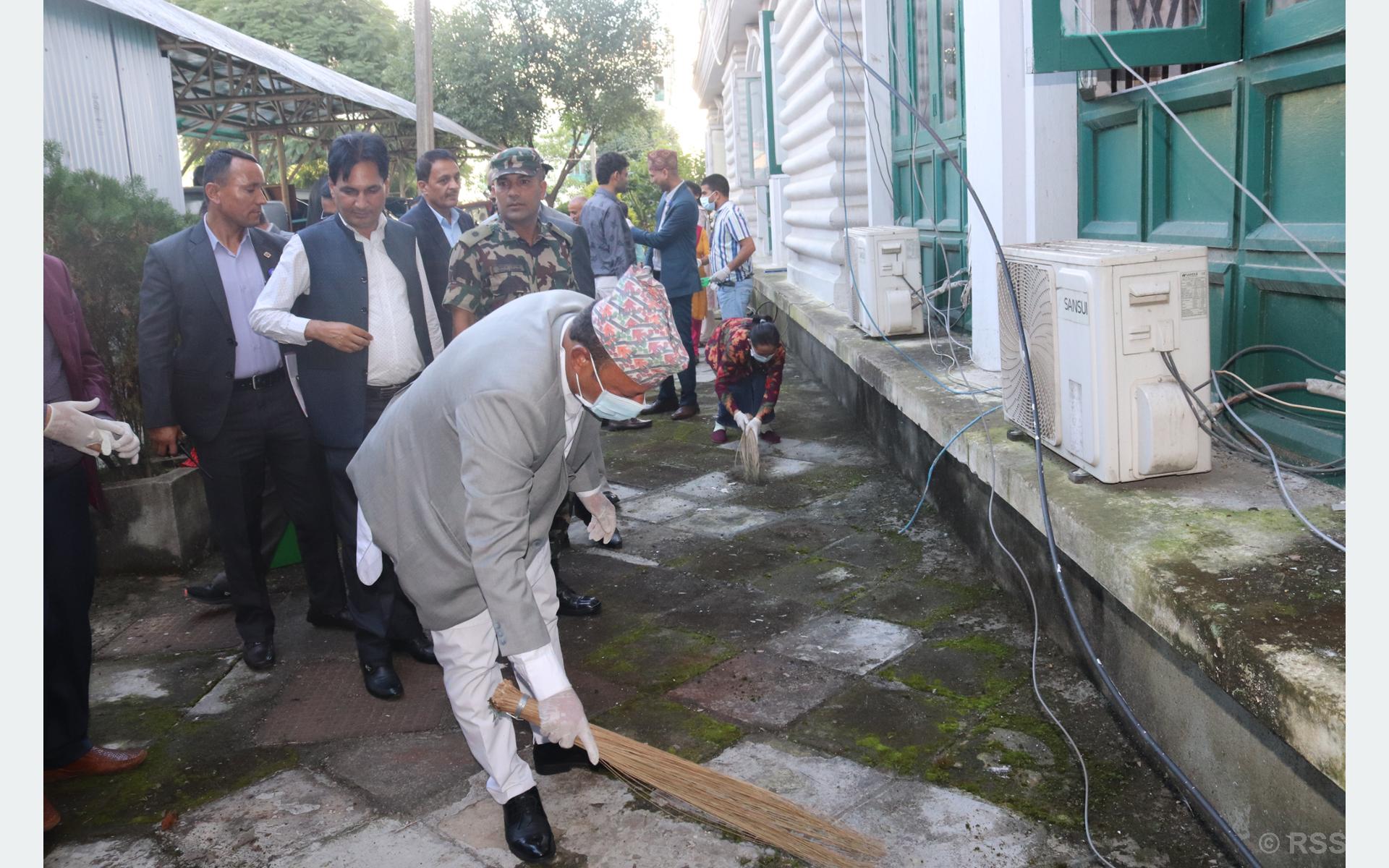 काठमाडौं। ऊर्जा, जलस्रोत तथा सिँचाइमन्त्री दीपक खड्का मन्त्रालयको फोहर व्यवस्थापनमा खटिएका छन्। उनले शुक्रबार मन्त्रालय परिसरभित्र सरसफाइ गर्दै कर्मचारीलाई समेत हौसला प्रदान गरे। सरसफाइ गर्ने क्रममा मन्त्रालय, मन्त्रालयअन्तर्गत रहेका सबै कार्यालयलाई सफा उनले राख्न आग्रह गरे।