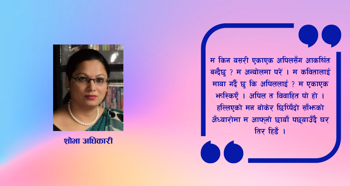 म कविताको किताब बाेक्दै सोच्न थालें। म किन यसरी एकाएक अपिलसँग आकर्षित बन्दैछु।