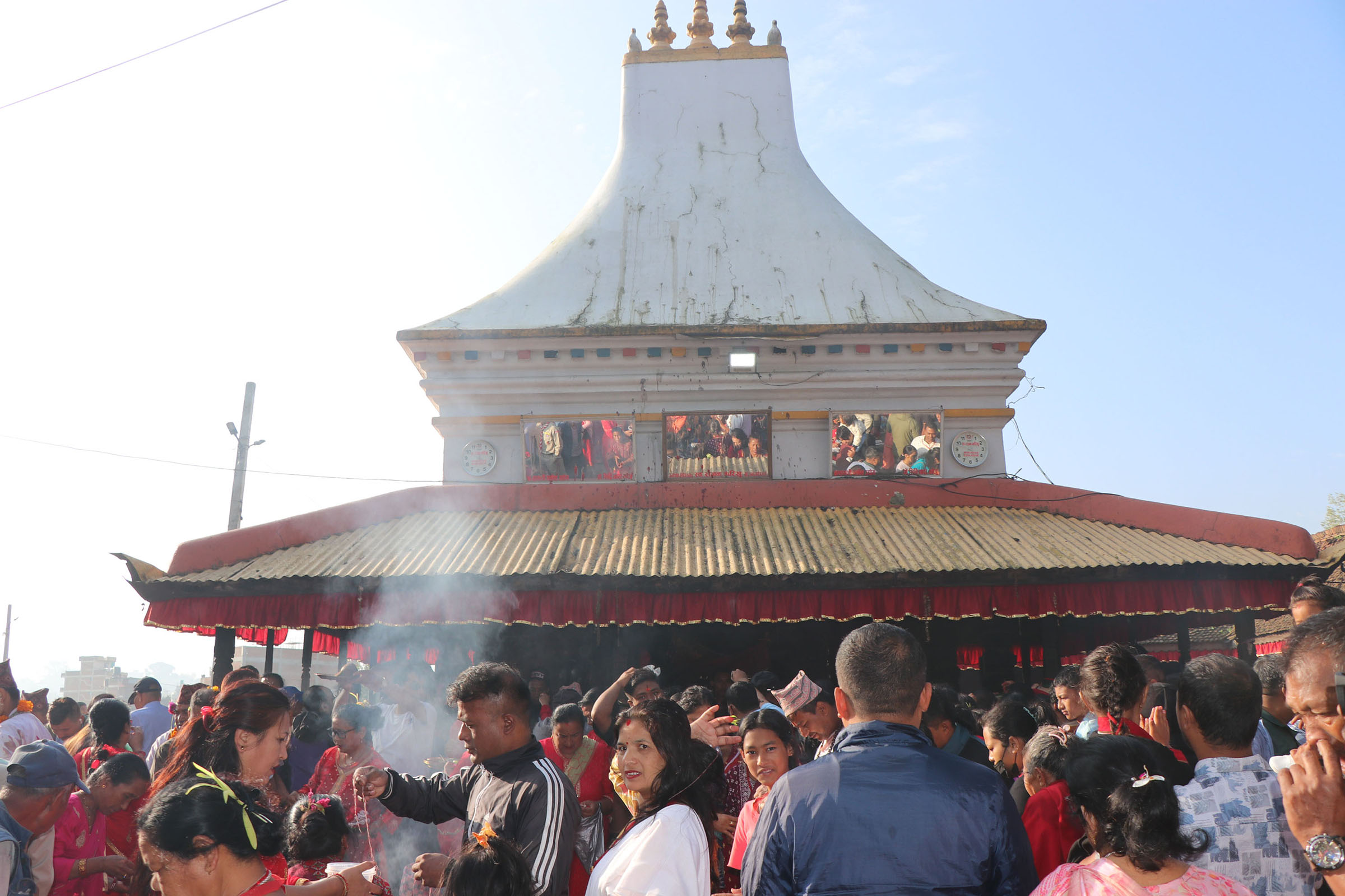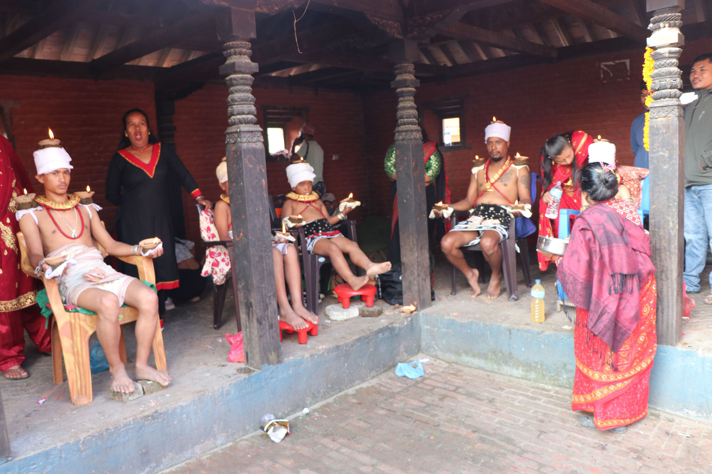 ब्रह्मायणी मन्दिरमा बत्ति बालेर बसेका युवा तथा बालकहरु (तस्बिर)
