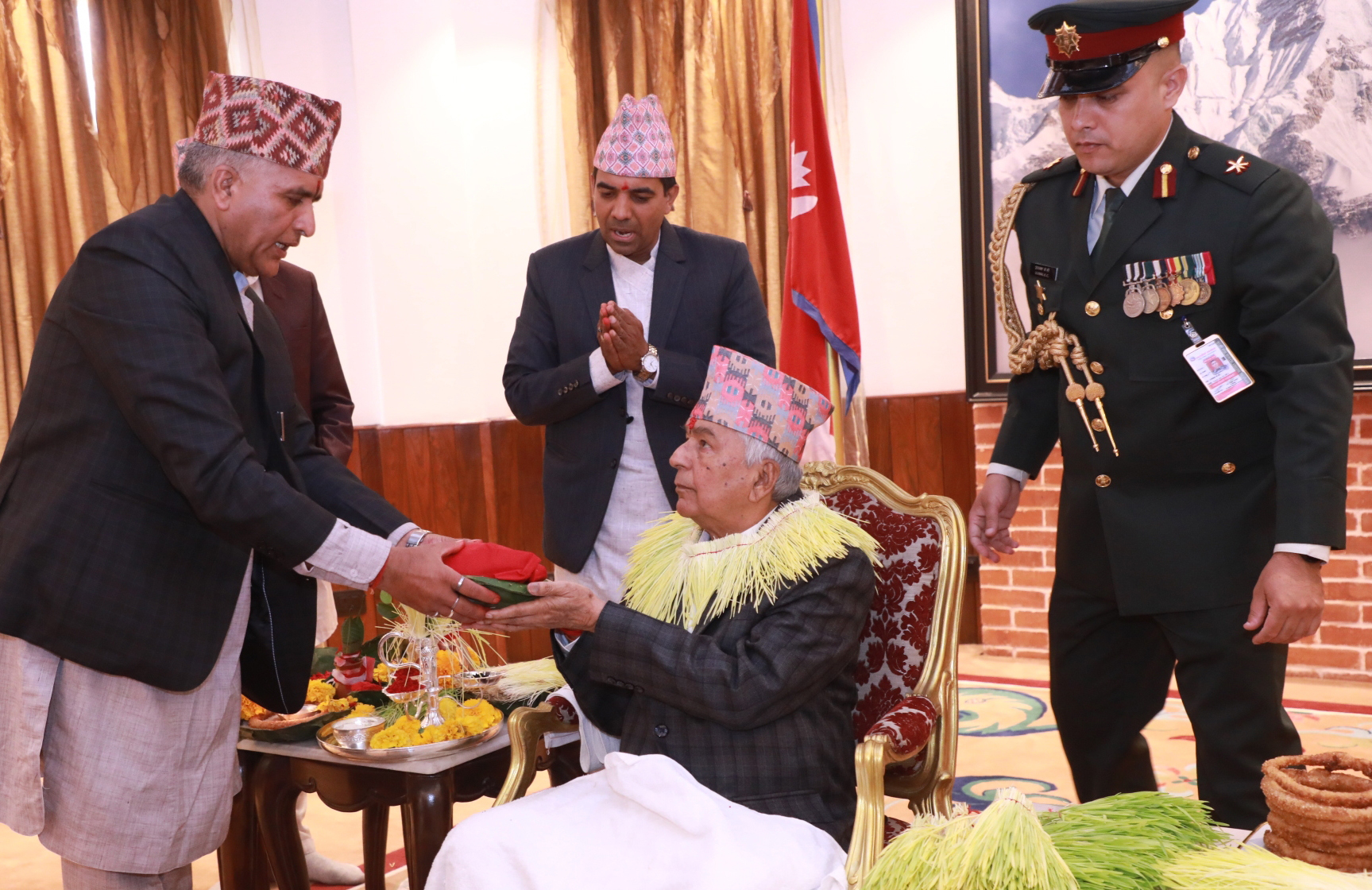 राष्ट्रपति पौडेलबाट विजयादशमीको टीका ग्रहण