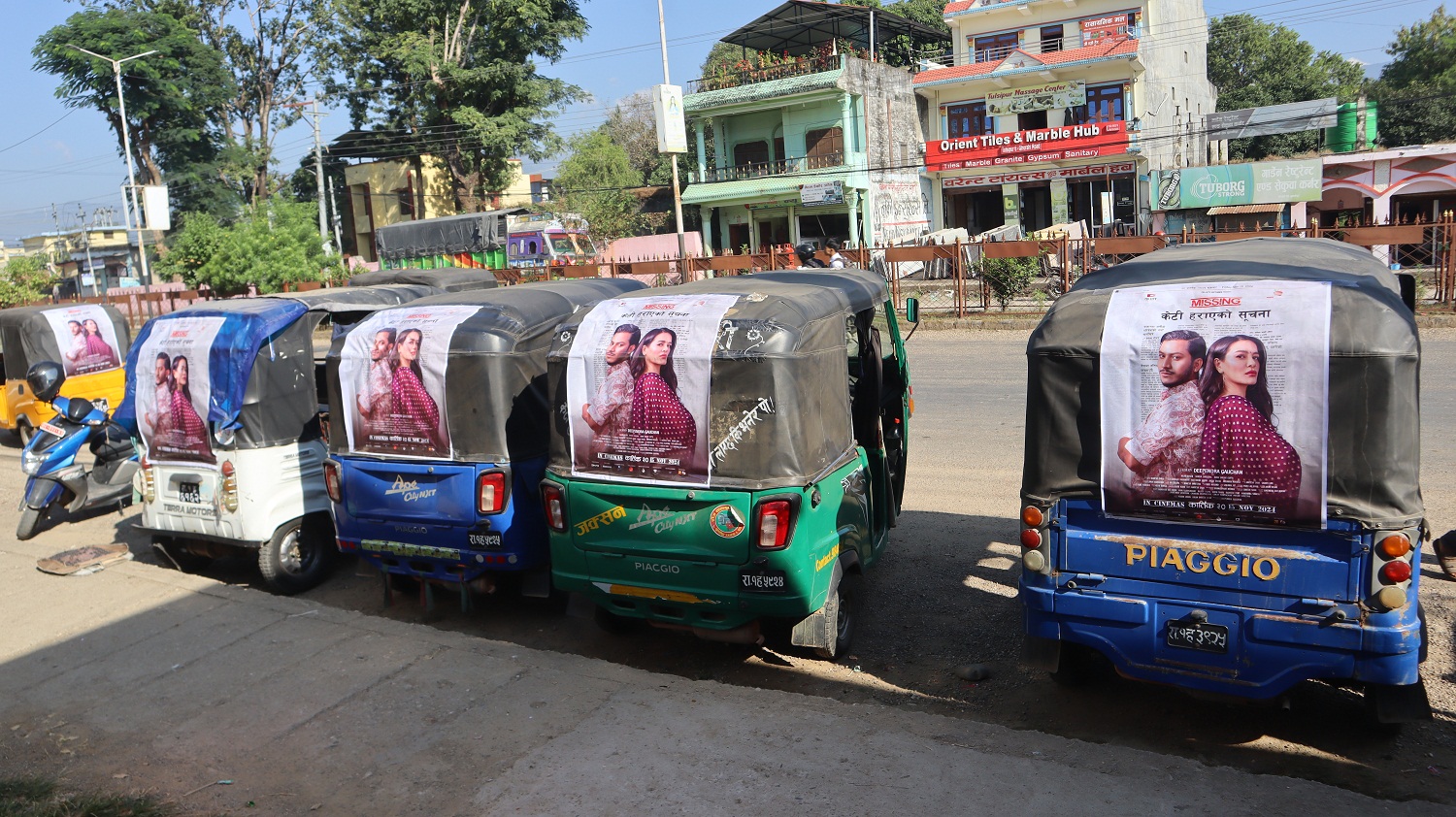 काठमाडौं। यही कार्तिक ३० गतेबाट रिलिज हुने फिल्म ‘मिसिङः केटी हराएको सूचना’को उपत्यकाबाहिर प्रचारप्रसार सुरु भएको छ। देशका प्रमुख सहरका करिब ६ सय अटोमा फिल्मका नायक नाजिर हुसेन र नायिका सृष्टि श्रेष्ठ अंकित पोस्टर टासेर प्रचारप्रसारको सुरुवात गरिएको हो।