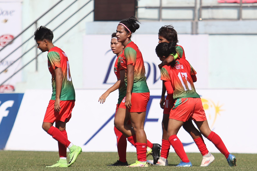 खेलको ५२औ मिनेटमा बंगलादेशले गोल गर्दै १–० को अग्रता लिएको थियो भने खेलको ५५औं मिनेटमा नेपालका लागि अमिशा कार्कीले गोल गर्दै खेल बराबरी गरेकी थिइन्।