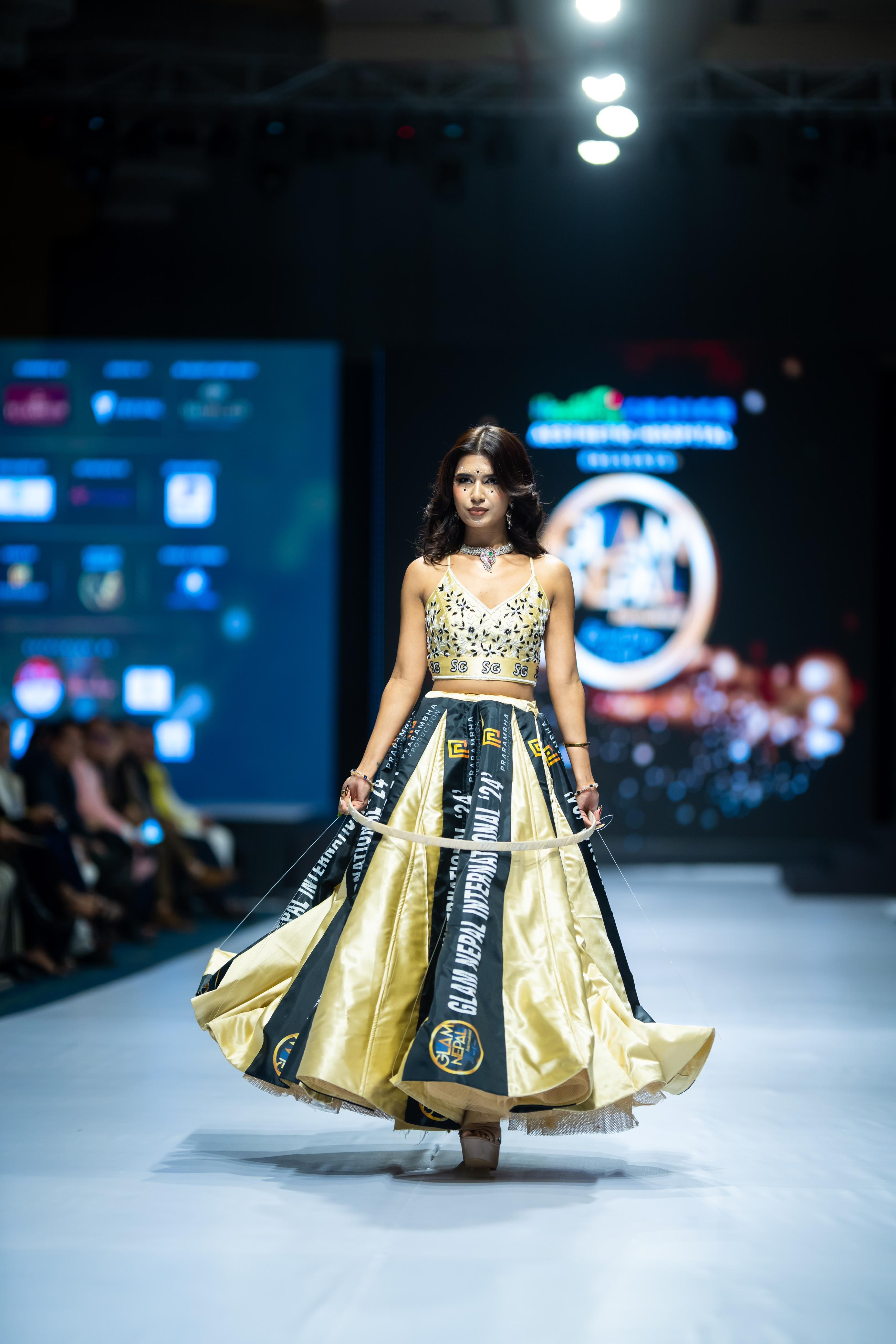 ग्लाम नेपाल इन्टरनेसनलको चौथो संस्करणमा चर्चित डिजाइनरले बनाएका कपडामा उनीहरुले मोडलकासाथ क्याट वाक गरेका छन्।