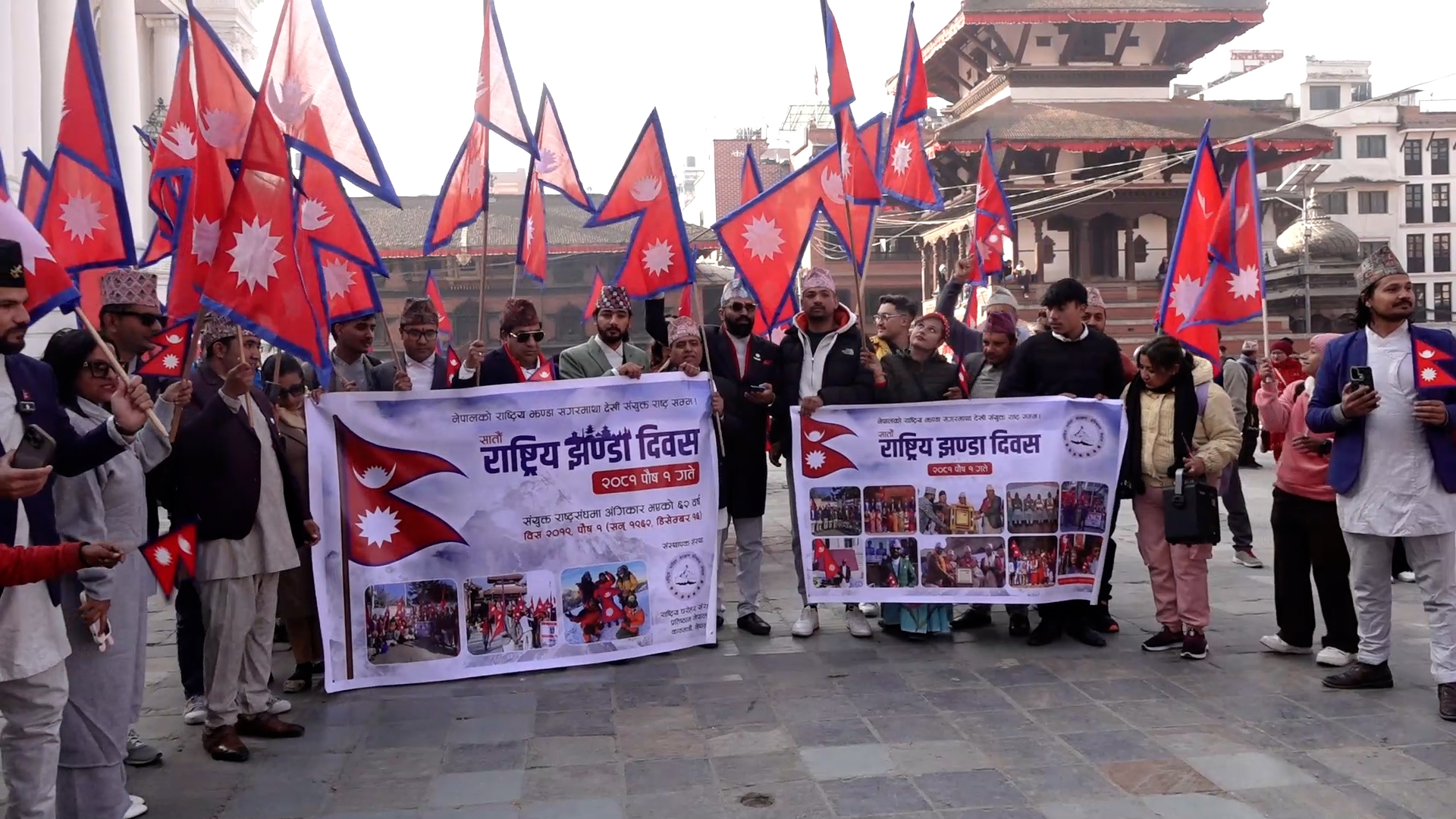 काठमाडाैं। विभिन्न कार्यक्रम गरी सोमबार सातौं राष्ट्रिय झण्डा दिवस मनाइएको छ। राष्ट्रिय धरोहर संरक्षण प्रतिष्ठान नेपालले काठमाडौंको बसन्तपुरमा बिभिन्न कार्यक्रम गरि राष्ट्रिय झण्डा दिवस मनाएको हो।