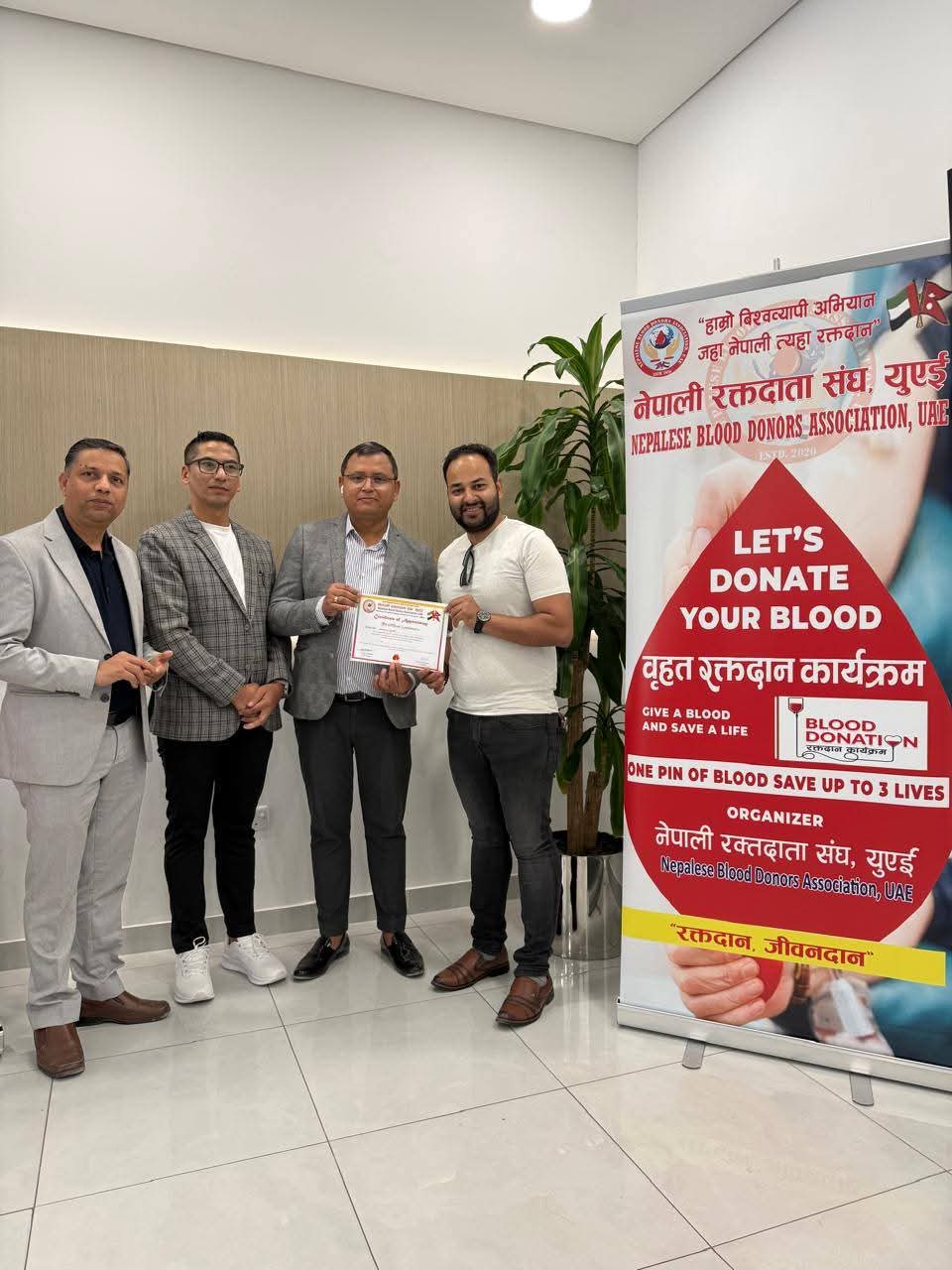 नेपाली रक्तदाता संघ यूएईको दुबईमा रक्तदान कार्यक्रम