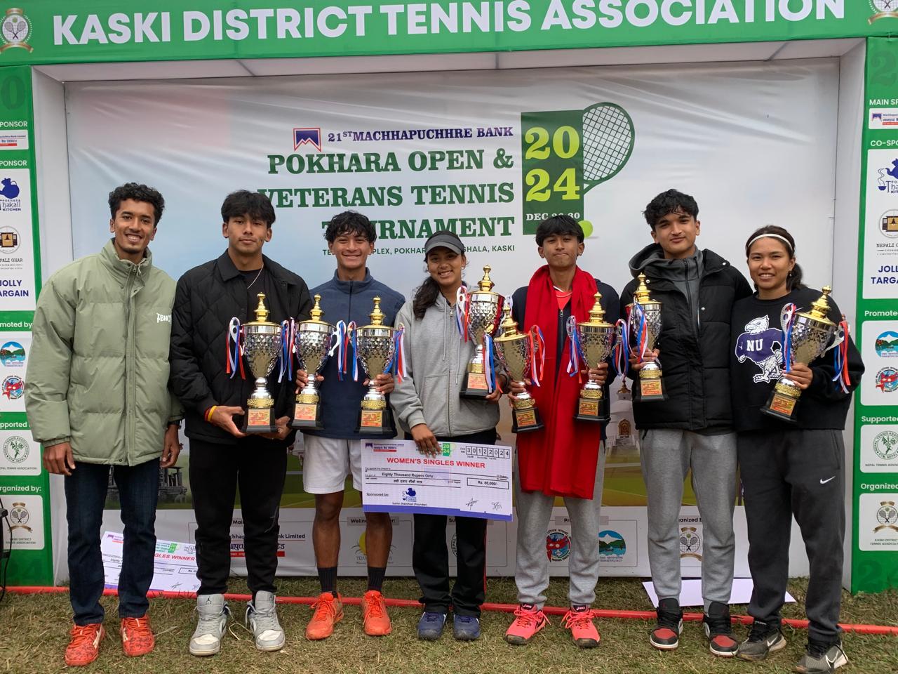 कास्की जिल्ला टेनिस संघद्वारा यही पुस ११ गतेदेखि सुरू भएको उक्त प्रतियोगिताको आज सम्पन्न फाइनलमा पुरूष एकलतर्फ आरव सम्राट हाडाले प्रनव मानन्धरलाई ६–१ र ६–१ अंकले पराजित गरे।