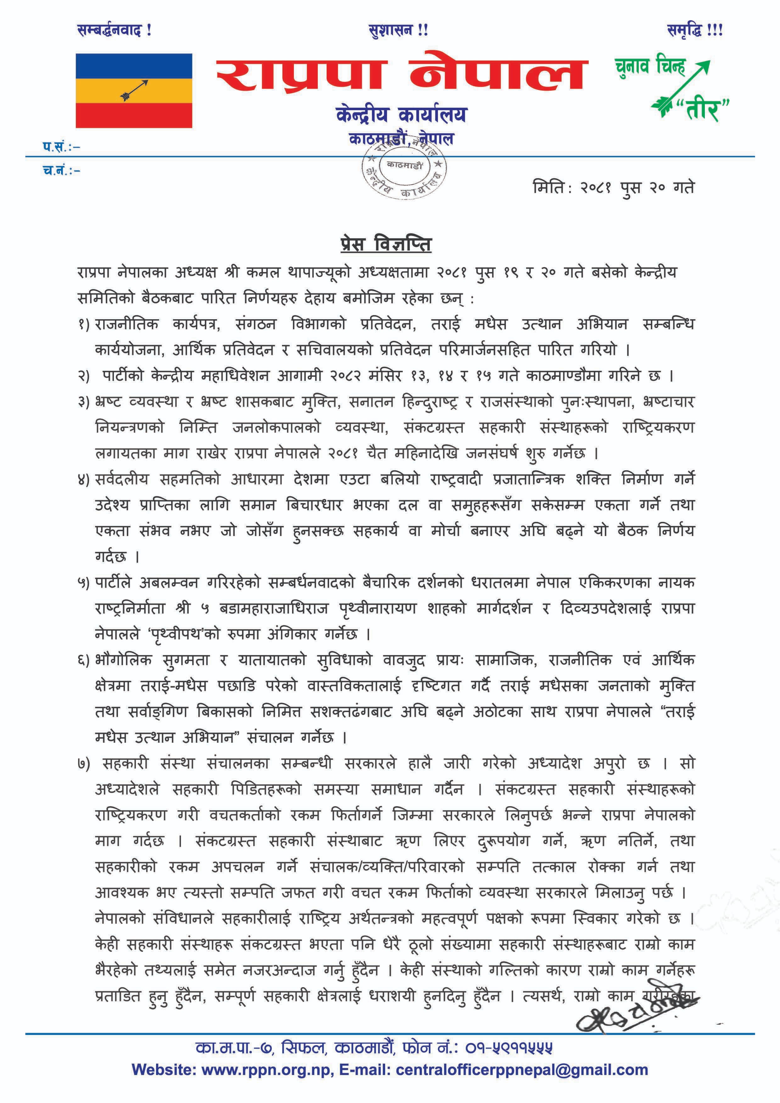 राप्रपा नेपालको महाधिवेशन २०८२ मंसिरमा हुने