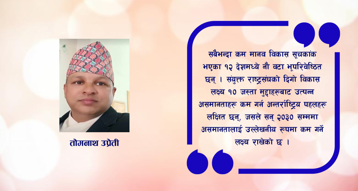 संयुक्त राष्ट्रसंघको दिगो विकास लक्ष्य १० जस्ता मुद्दाहरूबाट उत्पन्न असमानताहरू कम गर्न अन्तर्राष्ट्रिय पहलहरू लक्षित छन्, जसले सन् २०३० सम्ममा असमानतालाई उल्लेखनीय रूपमा कम गर्ने लक्ष्य राखेको छ।
