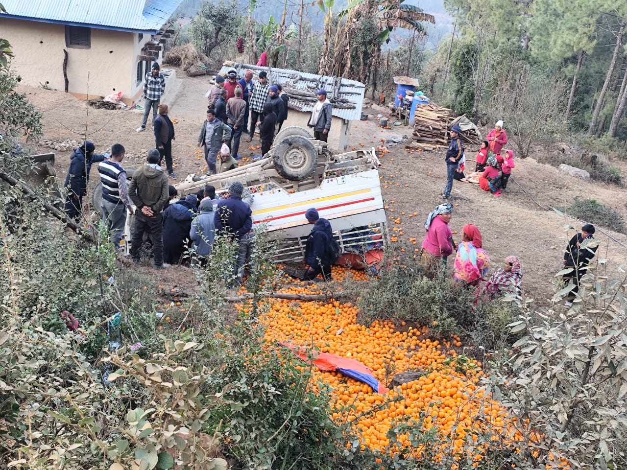 रोल्पाको माडी गाउँपालिका-१ पेँदिखोलादेखि सुन्तला बोकेर दाङको तुलसीपुर आउँदै गरेको रा१च ८६८७ नम्बरको पिकअप त्रिवेणी-४ मथुरापानीमा दुर्घटना भएको हो।