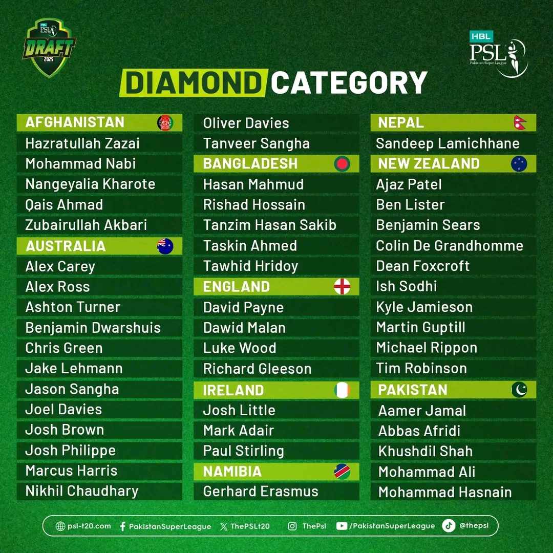 यसअघि ६ खेलाडी ड्राफ्टमा पीएसएल समेटिएका थिए। शुक्रवार सार्वजनिक भएको ड्राफ्टमा सन्दीपको नाम डायमण्ड क्याटेगोरीमा थपिएको हो ।