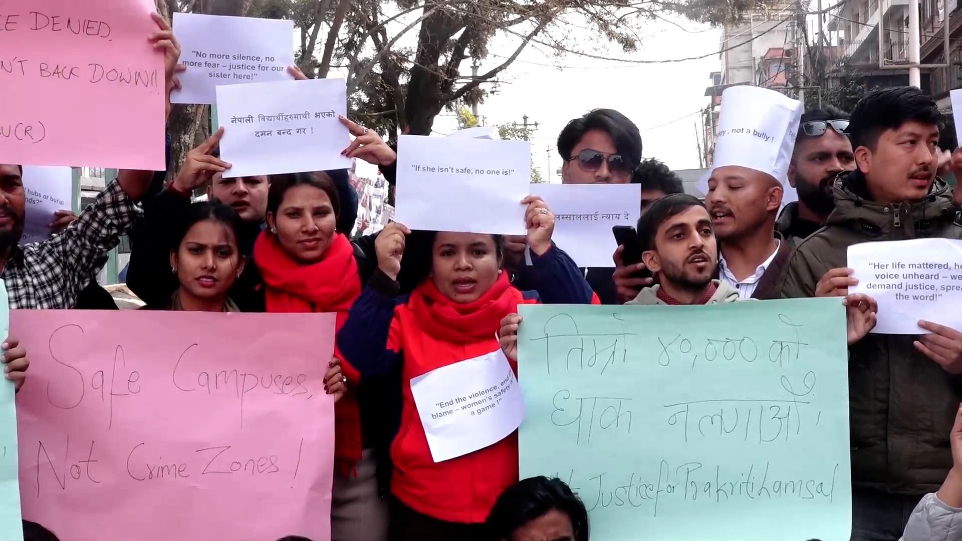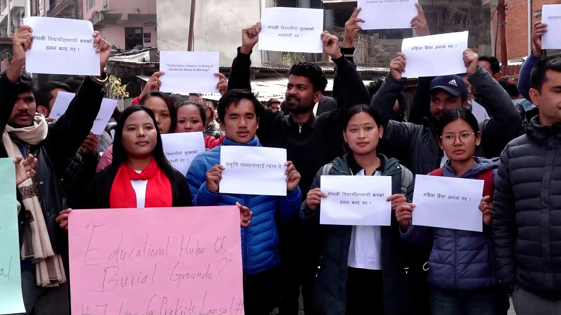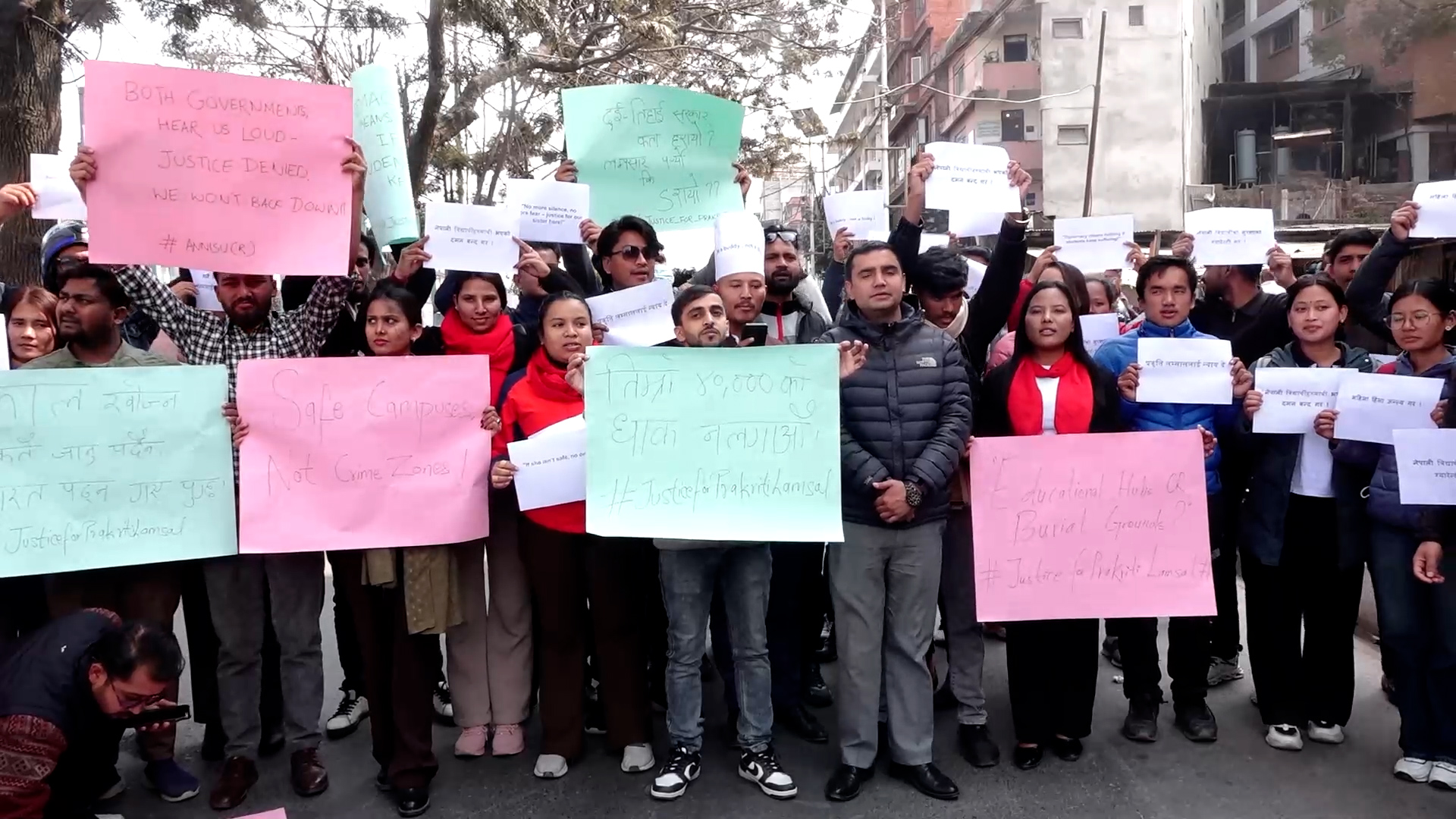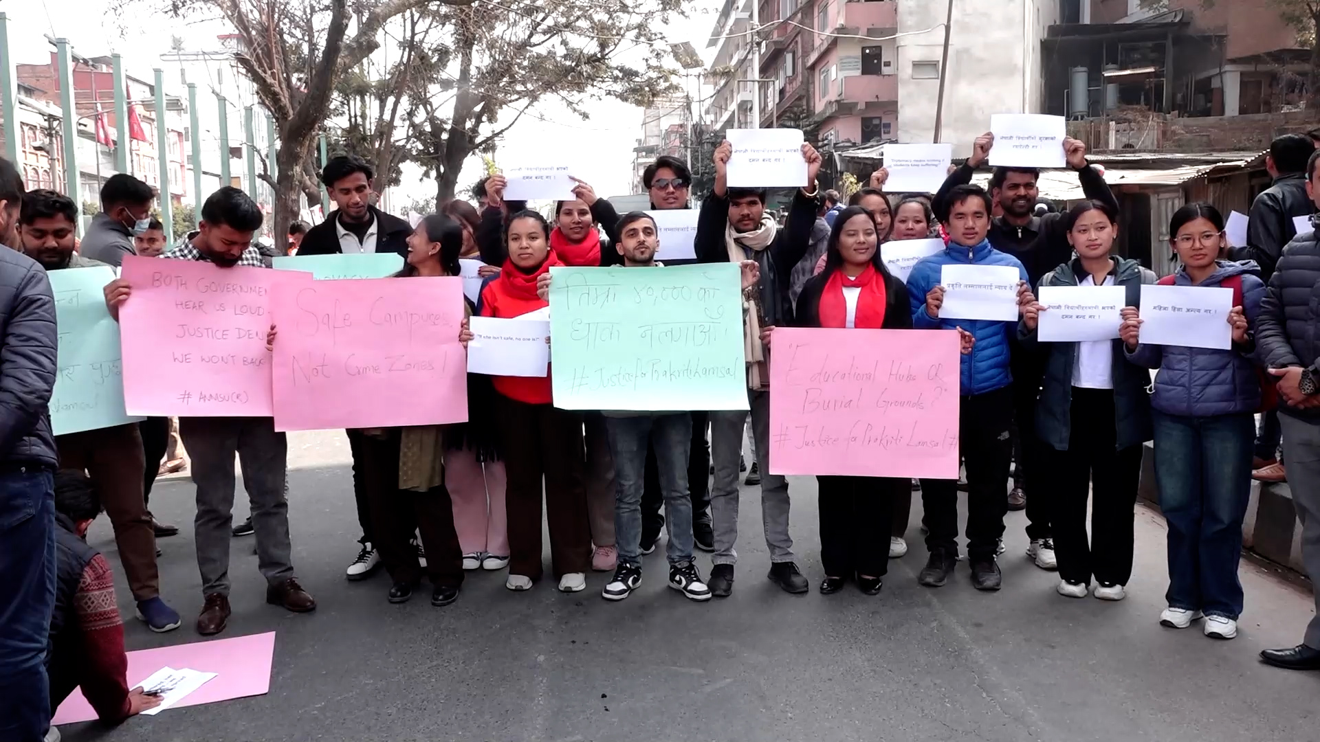 उनीहरुले घटनाको सत्यतथ्य छानविन हुनुपर्ने, नेपाली विद्यार्थीको सुरक्षा हुनुपर्ने माग समेत राखेका छन्। प्रदर्शनमा सहभागीहरुले प्रकृति लम्साललाई न्याय दे, नेपाली विद्यार्थीहरुमाथि भएको दमन बन्द गर, भारतमा अध्ययनरत विद्यार्थीको रक्षा गर लगाएतका प्लेकार्ड प्रदर्शन गरेका थिए।
