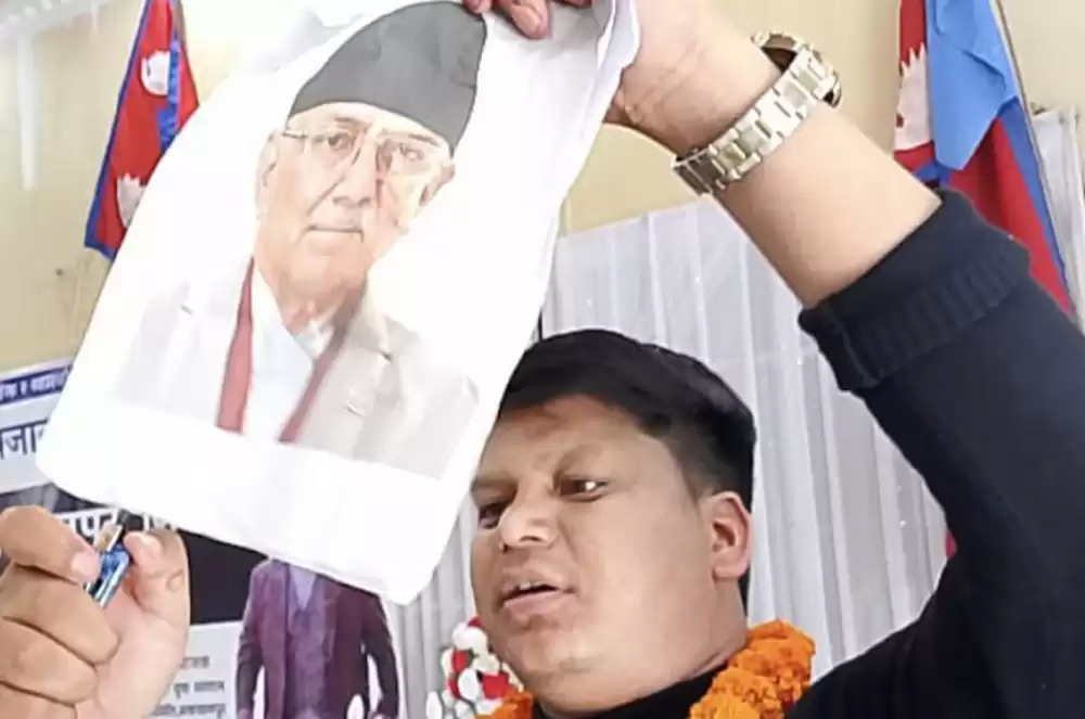 अप्रमाणित आरोप लगाउने पूर्व प्रधानमन्त्रीको फोटो जलाउँदा प्रहरी लगाएर पक्राउ