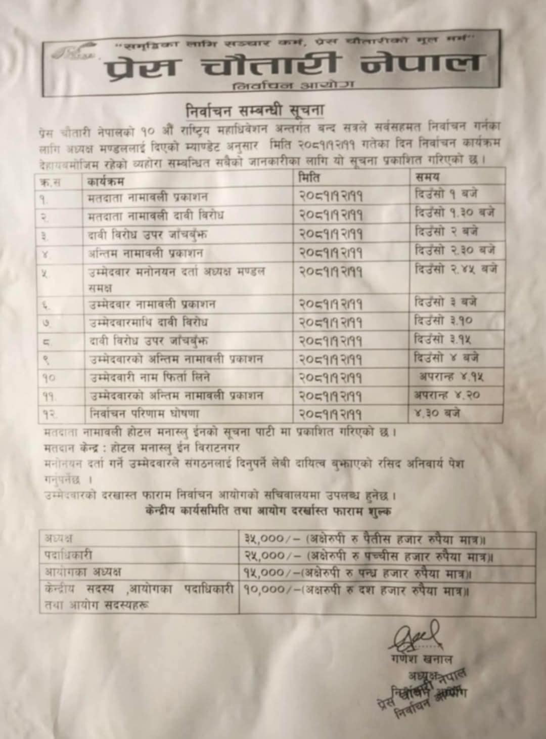 तैपनि, एमालेका पत्रकारहरूको उम्मेदवारको शुल्क निर्धारण सार्वजनिक गरिएको छ।