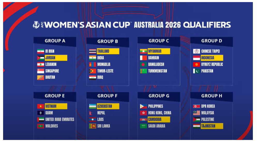 काठमाडौं। एएफसी महिला एसियन कप २०२६ छनोटको समूह अन्तर्गत नेपाल ‘एफ’ मा परेको छ।