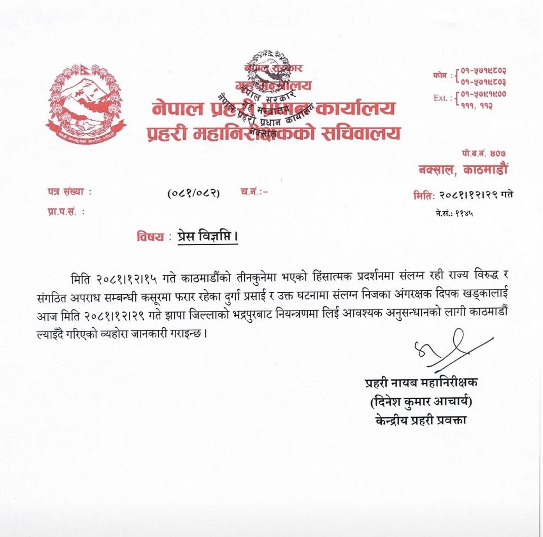 नेपाल प्रहरी हिरासतमा दुर्गा प्रसाईं, भद्रपुरबाट काठमाडौं ल्याइँदै