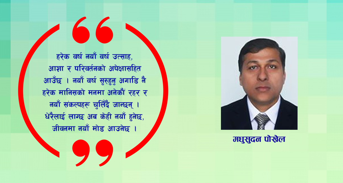 हरेक वर्ष नयाँ वर्ष उत्साह, आशा र परिवर्तनको अपेक्षासहित आउँछ। नयाँ वर्ष सुरुहुनु अगाडि नै हरेक मानिसको मनमा अनेकौं रहर र नयाँ संकल्पहरू चुलिँदै जान्छन्। धेरैलाई लाग्छ अब केही नयाँ हुनेछ, जीवनमा नयाँ मोड आउनेछ।