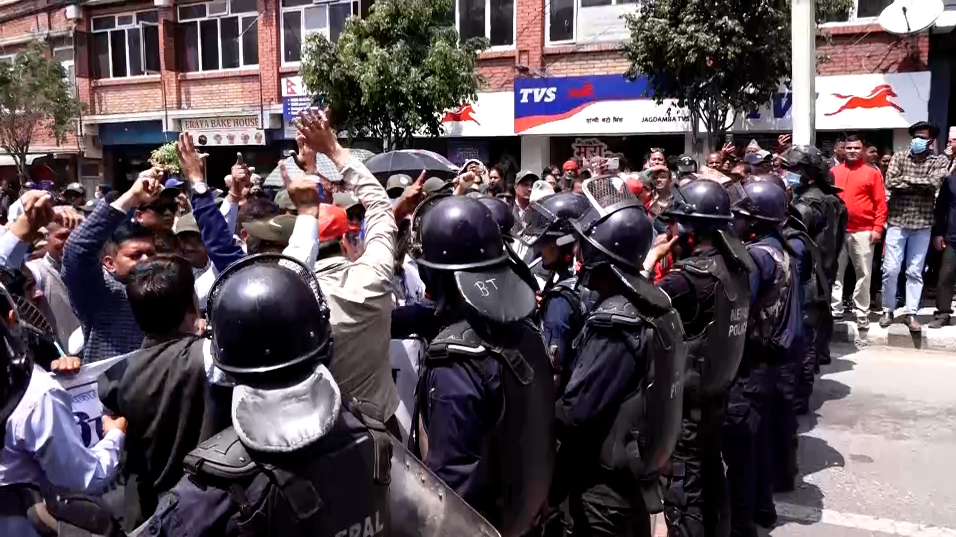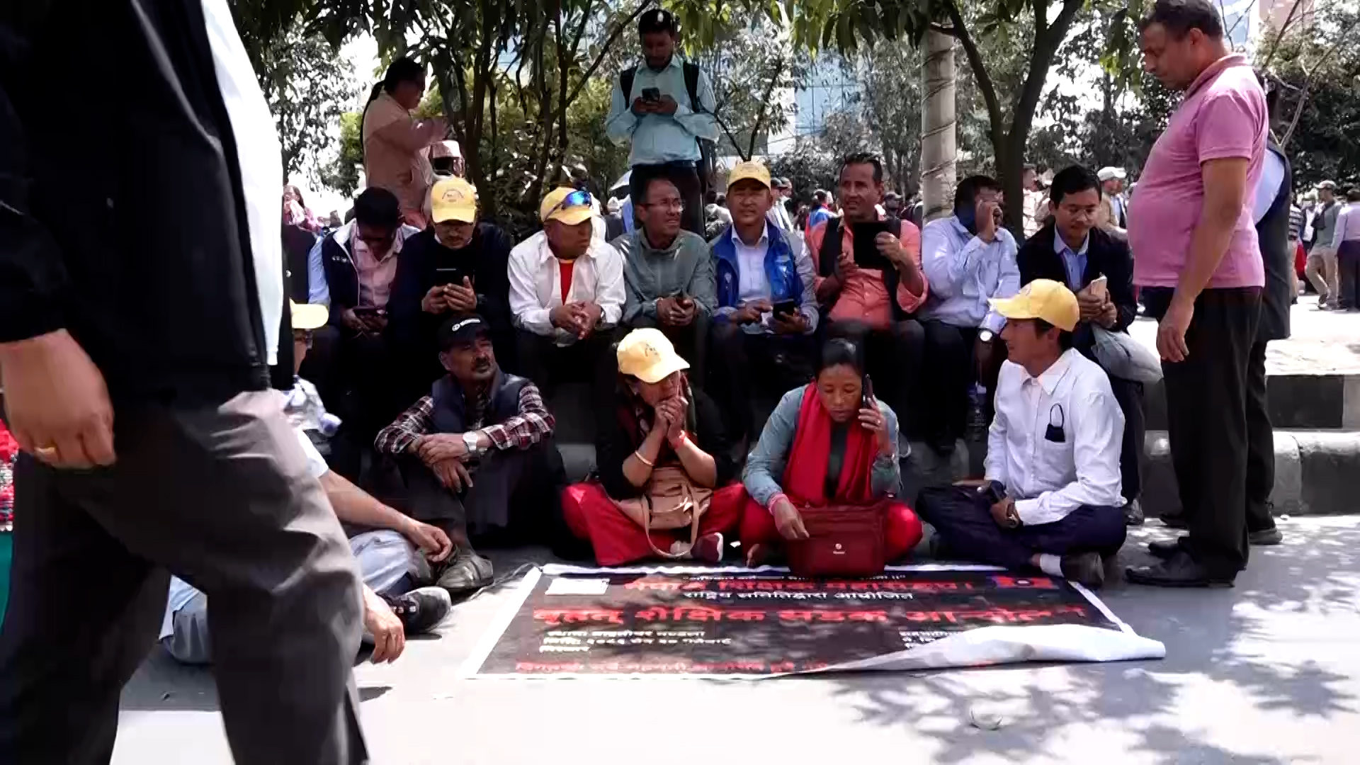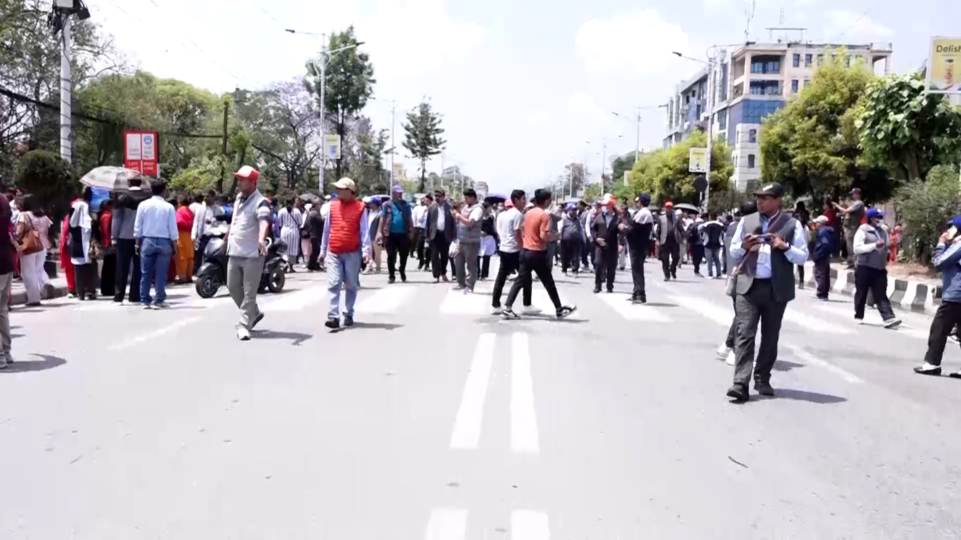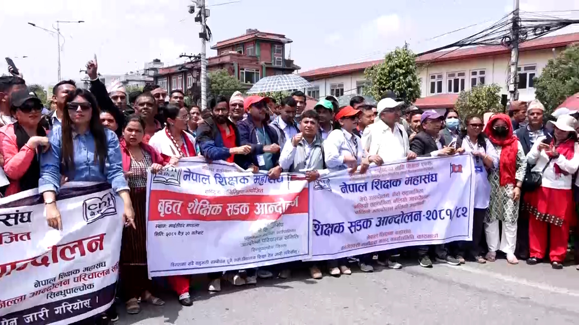 माइतीघरबाट प्रदर्शनसहित बानेश्वर पुगेर शिक्षकहरुले सडकमा धर्ना दिएका हुन्। नयाँ बानेश्वरको निषेधित क्षेत्रबाट अघि बढ्न प्रहरीले रोकेपछि उनीहरु सडकमा नै धर्ना दिएर बसेका हुन्।